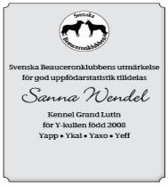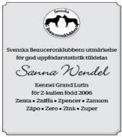 gånger för avelstik), Svenska Beauceronklubbens utmärkelser för god uppfödarstatestik, på vår Z-, Y-