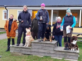 Det var Rally Lydnadstävling på vår hemma klubb, Sösk Bk, denna dag och vi var där med våra Troll. Grand Lutin Zpencer & Jag fick ihop 98/100 poäng och därmed titeln RLD N Grand Lutin Zniffa & Marie fick ihop 92/100 poäng och därmed titeln RLD F moder Nickan & Jag fick ihop 95/100 poäng, barnbarnet Grand Lutin Grappo & Susan debuterade denna kväll och fick ihop 82/100 poäng, och likaså Jazz du Fond des Camps & Rickard som på sin debut fick ihop 96/100 poäng. |