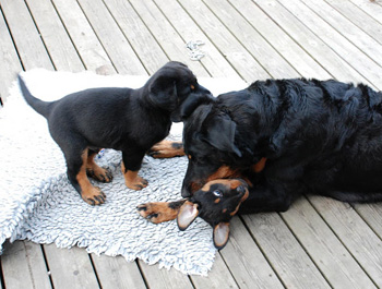 Våra valpar födds och bor i vårt hus som fullvärdiga familjemedlemmar under hela sin uppväxt. De blir miljö - och socialtränade kontinuerligt utanför hemmets lugna vrå, och däri ingår bilfärder redan från tidig ålder. Vi lägger all vår tid på våra valpar och kommande valpköpare därför är minst en av oss alltid hemma 24 timmar om dygnet. Att föda upp valpar är ett heltidsarbete, med stort ansvar, för oss.